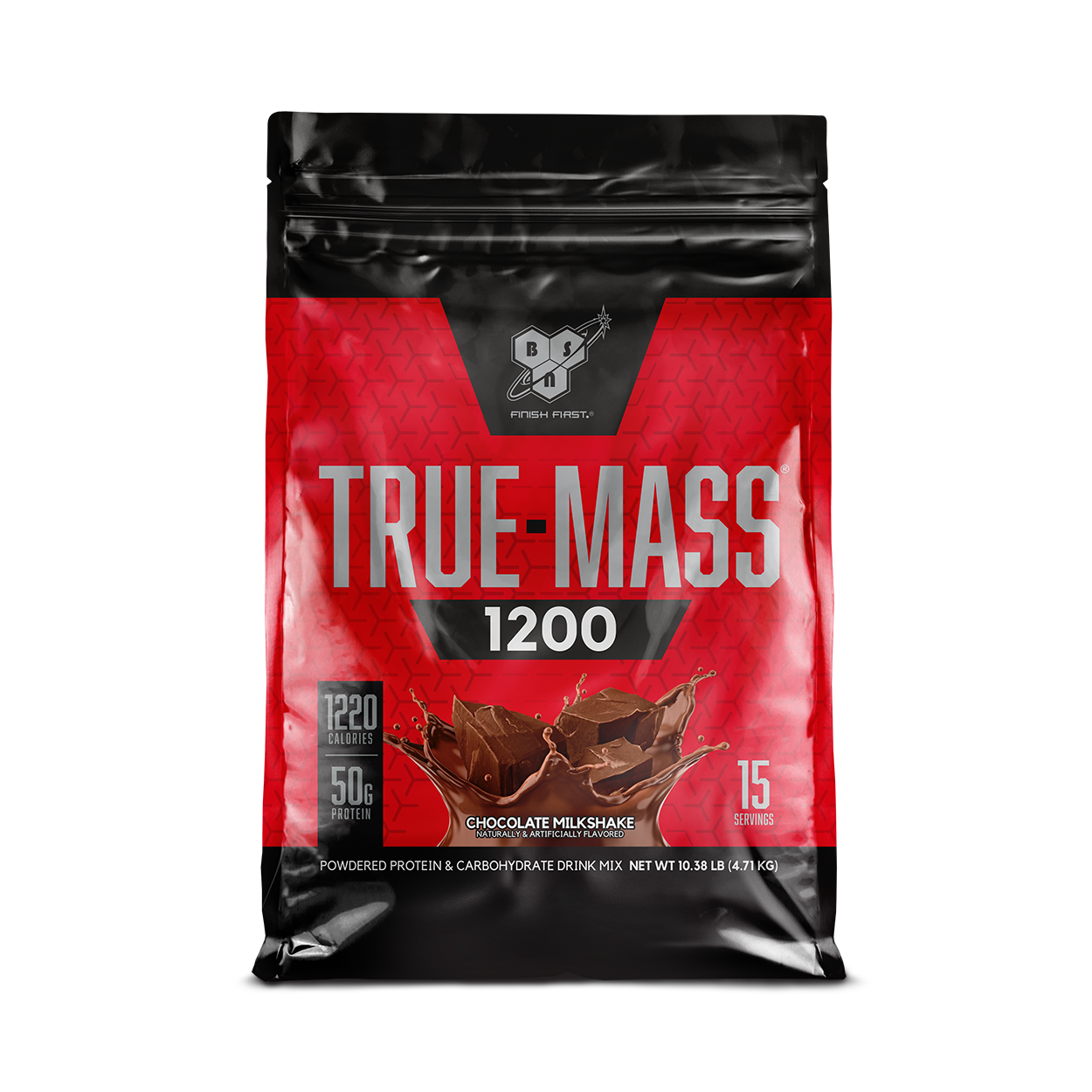 Each Serving of TRUE-MASS® 1200 features a 4:1 ratio of carbohydrates to protein, with 50g of our signature protein formula along with 213-215g of a unique complex carbohydrate blend that includes whole oat flour. Plus, the formula includes 11 grams of naturally occurring BCAAs and 24 grams of naturally occurring EAAs per serving along with added dietary fiber and Medium Chain Triglycerides to round out the nutritional value of each shake. Avaliable in three flavors