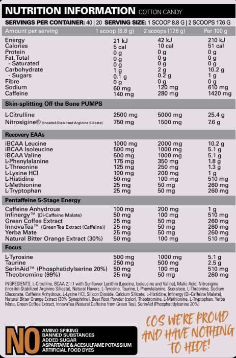 PRIDE’s unique performance-boosting blend includes 9 essential amino acids to support strength, muscle recovery, and mood. Its powerful combination of L-Citrulline, Nitrosigine®, and Betaine Anhydrous works together to maximise blood flow, nutrient delivery, and muscular endurance.